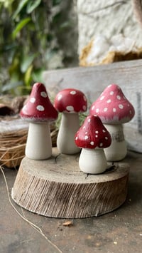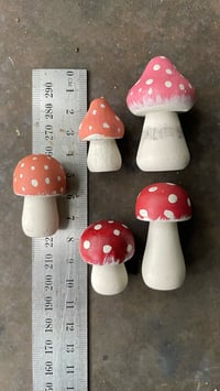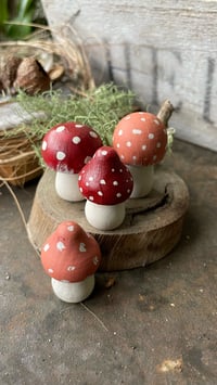Tiny hand painted timber mushrooms to add to your fairy door & garden.
